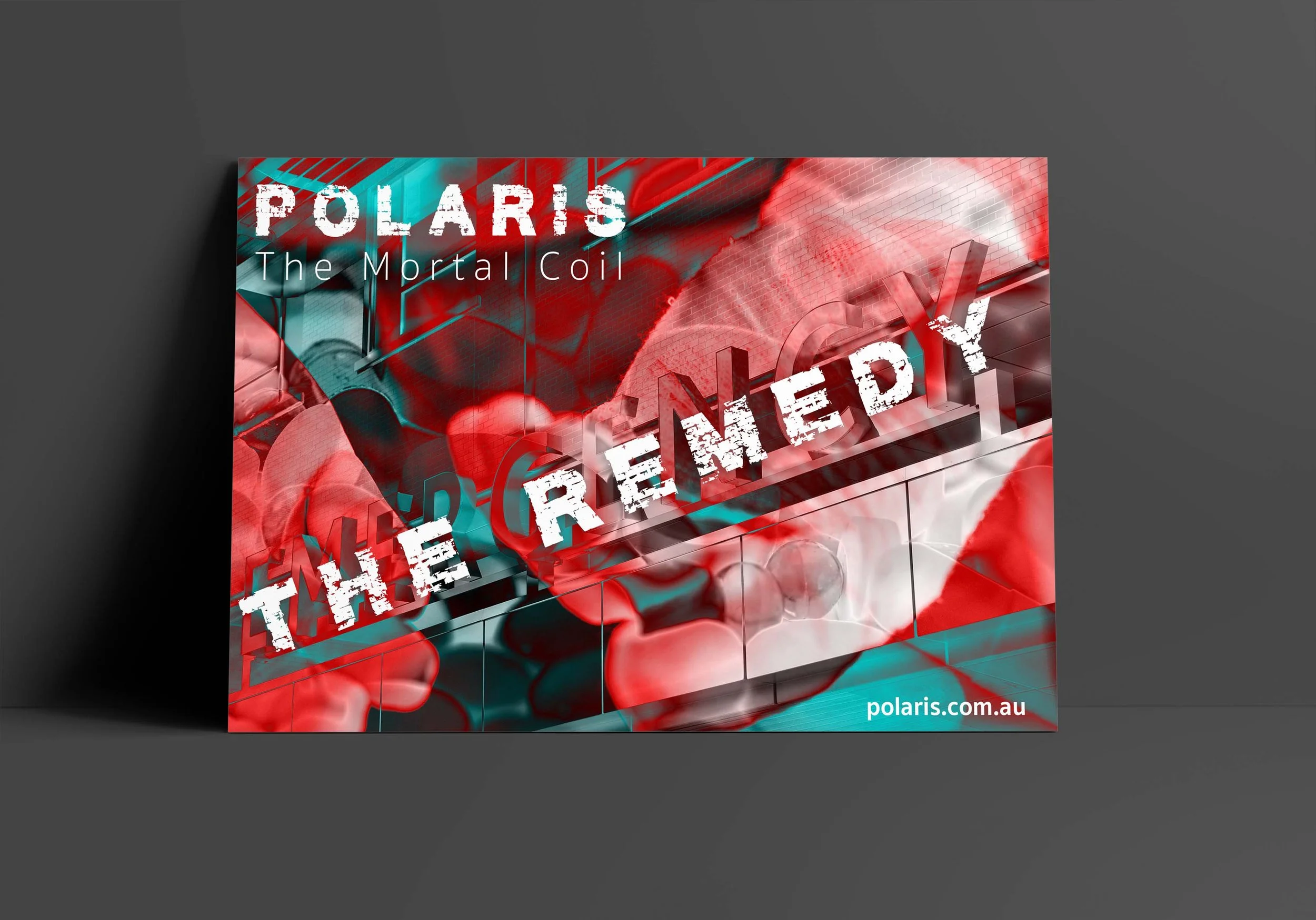 I chose song the “The Remedy” by Polaris from the “Motor Coil” album. Polaris is an Australian metal-core band. Hearing the song for the first time, I knew it would be difficult to create a design that would work well with this type of music. I got my inspiration from the band’s previous album cover and the music video for the song. For the album cover and the tour poster, I took “happy” images and destroyed them with multiple blending modes. For the single poster, I focused on the word “remedy” and collected medically themed images. I paired a distressed font with a thin sans-serif font. The person who added “The Remedy” to the hat, said “you really nailed the designs to match the song and type of music.”